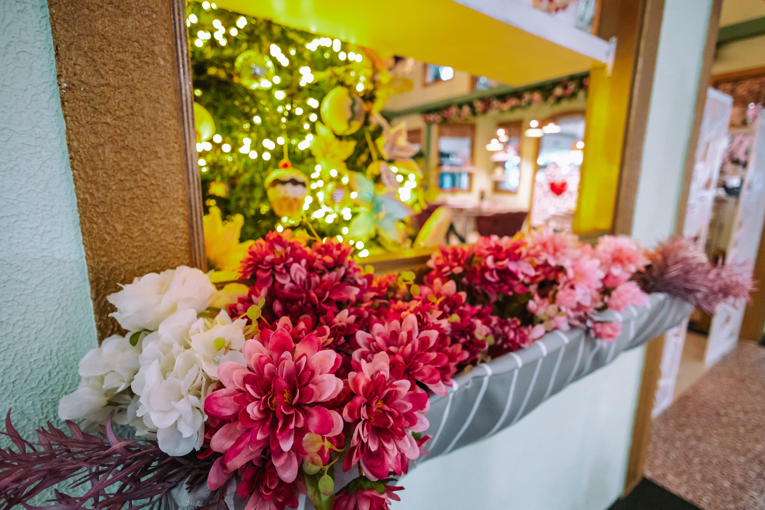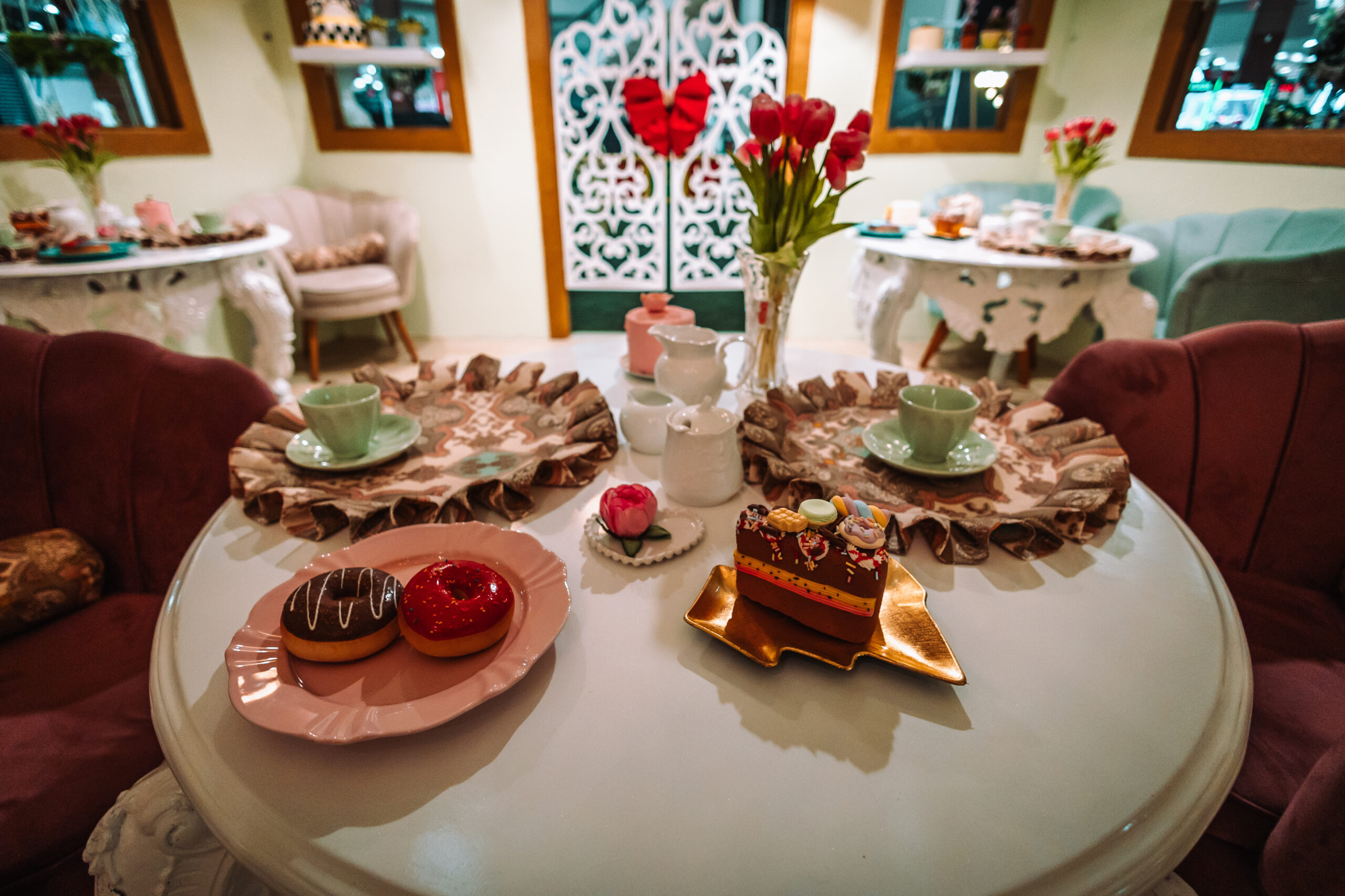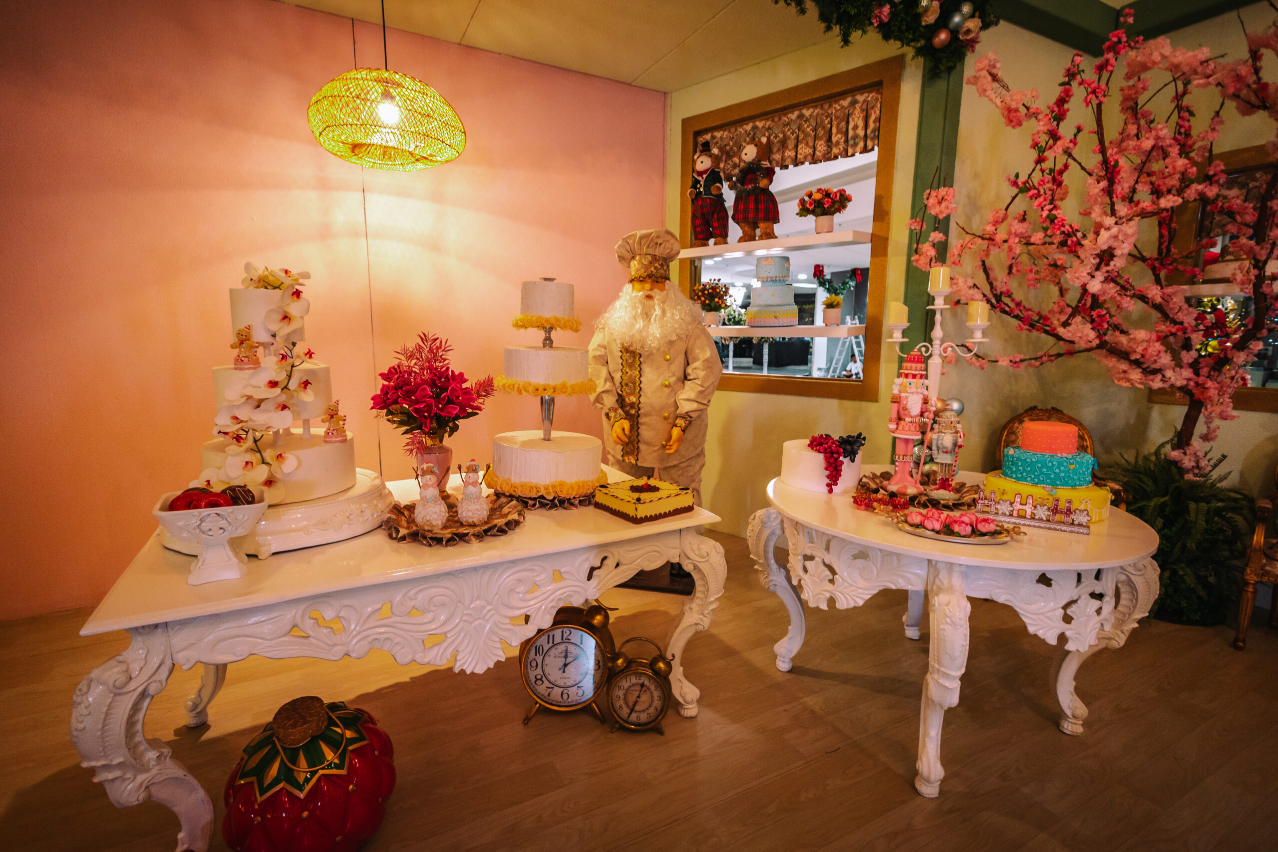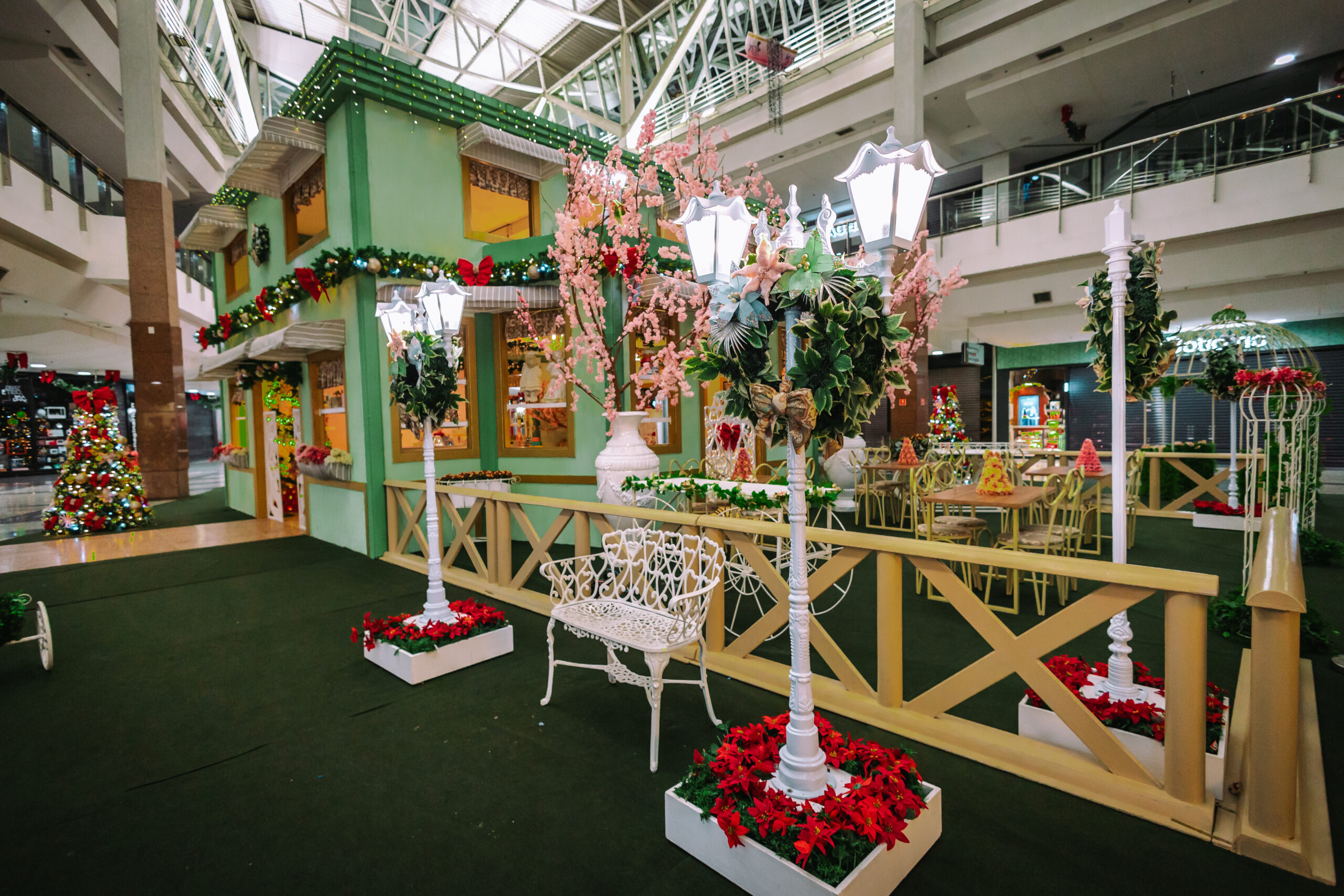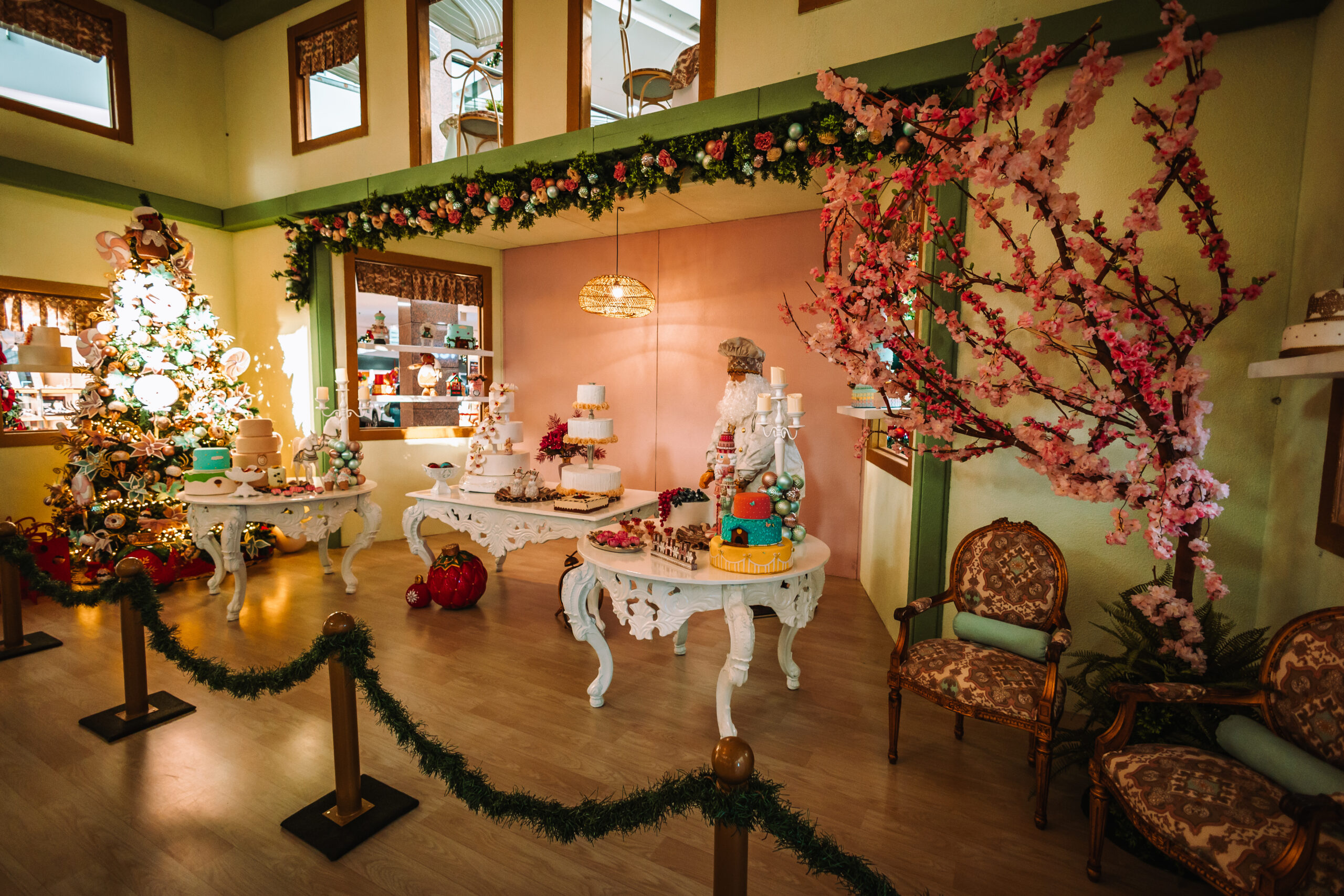 Ao se aproximar do bistrô, os olhos são imediatamente capturados pela fachada verde-clara com detalhes em madeira, guirlandas exuberantes, laços vermelhos e flores cintilantes. Os ares de confeitaria se destacam nas vitrines recheadas de miniaturas de bolos decorados, utensílios e doces cenográficos, que instigam a imaginação e aguçam a memória afetiva do Natal.