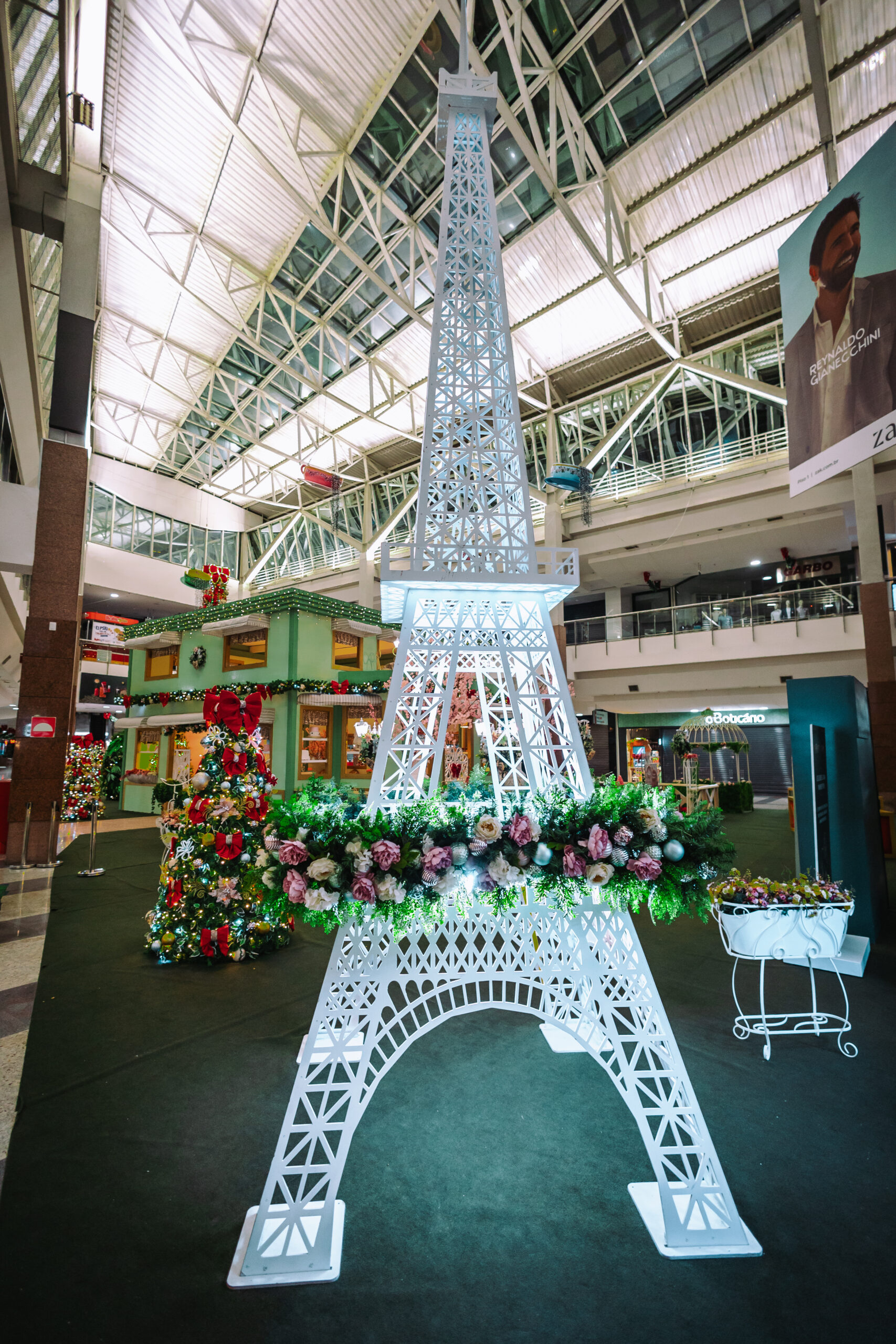 O Bistrô do Papai Noel é uma decoração natalina encantadora que une a magia do Natal ao charme de uma confeitaria parisiense. Com árvores floridas, guirlandas, doces cenográficos e uma imponente Torre Eiffel iluminada, o cenário convida todos a vivenciarem um conto de fadas natalino repleto de beleza, aroma e fantasia.