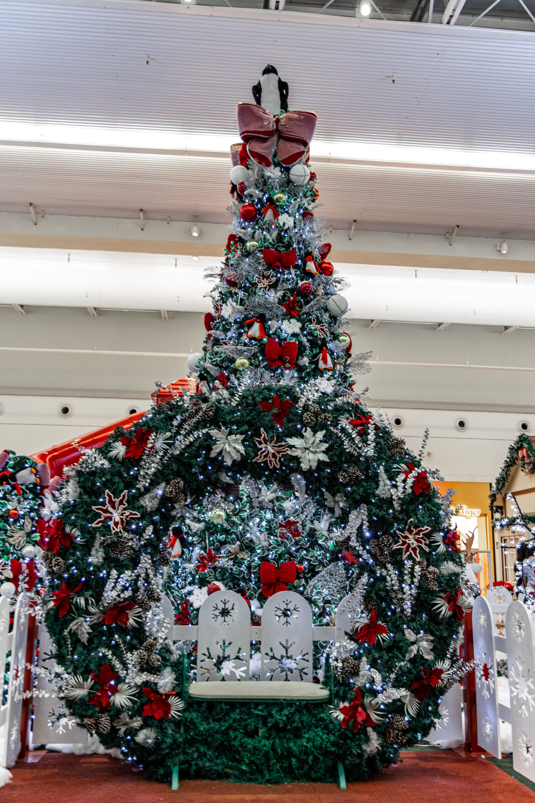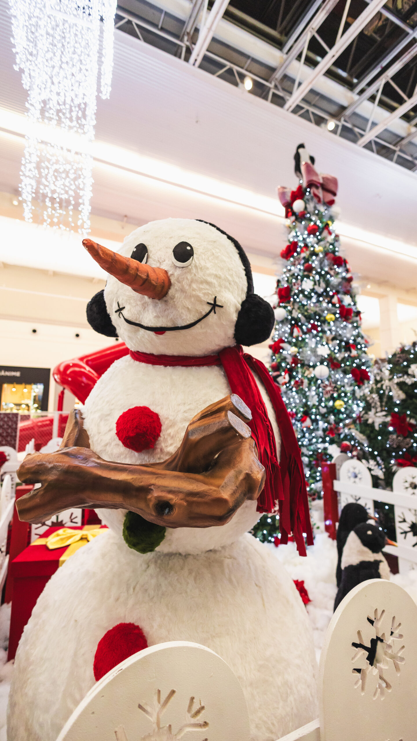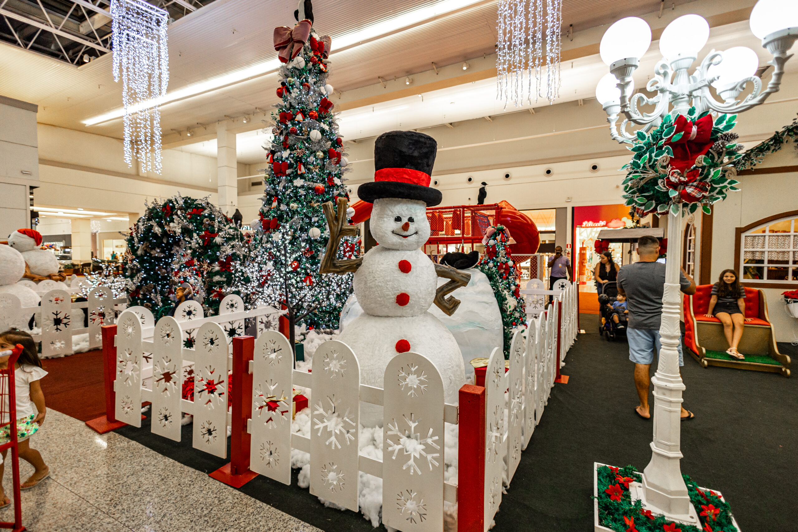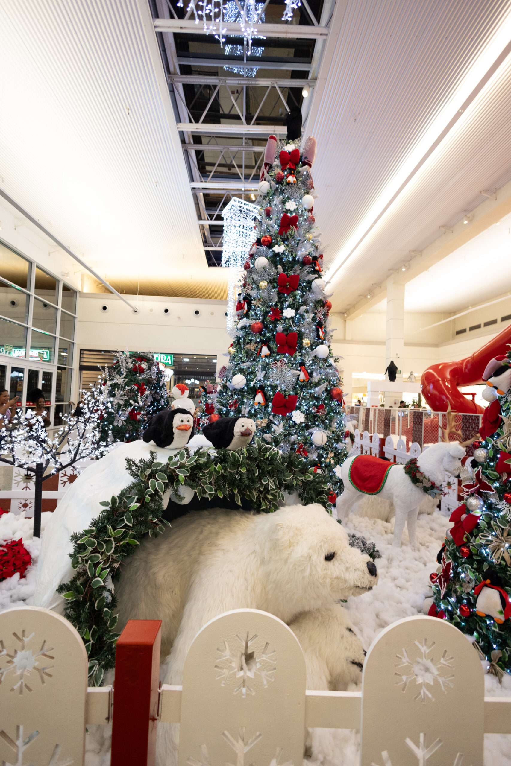 Em meio a um cenário branco como neve, o “Chalé de Inverno do Noel” convida a uma imersão mágica no Natal do Polo Norte. Árvores natalinas exuberantes, decoradas com laços de veludo, bolas vermelhas, prateadas e pingentes de flocos de neve, rodeiam a vila encantada. Bonecos de neve, ursos polares com filhotes e renas formam um verdadeiro espetáculo de fofura no meio do gelo cenográfico.