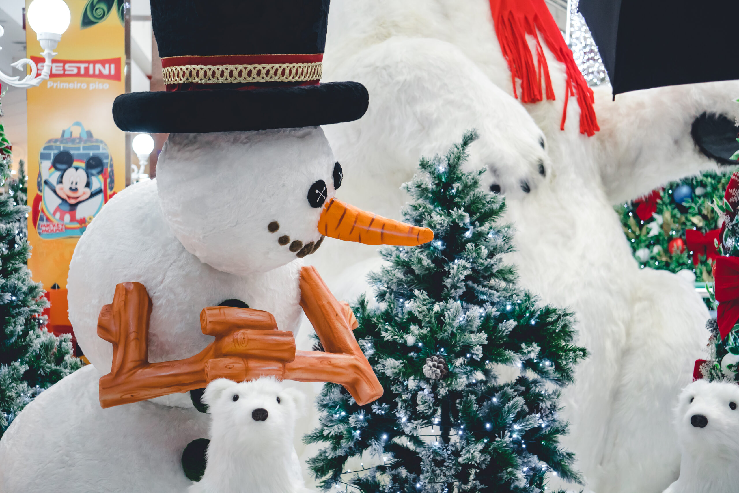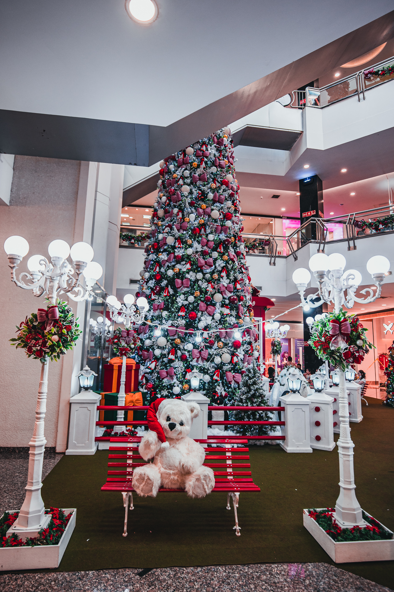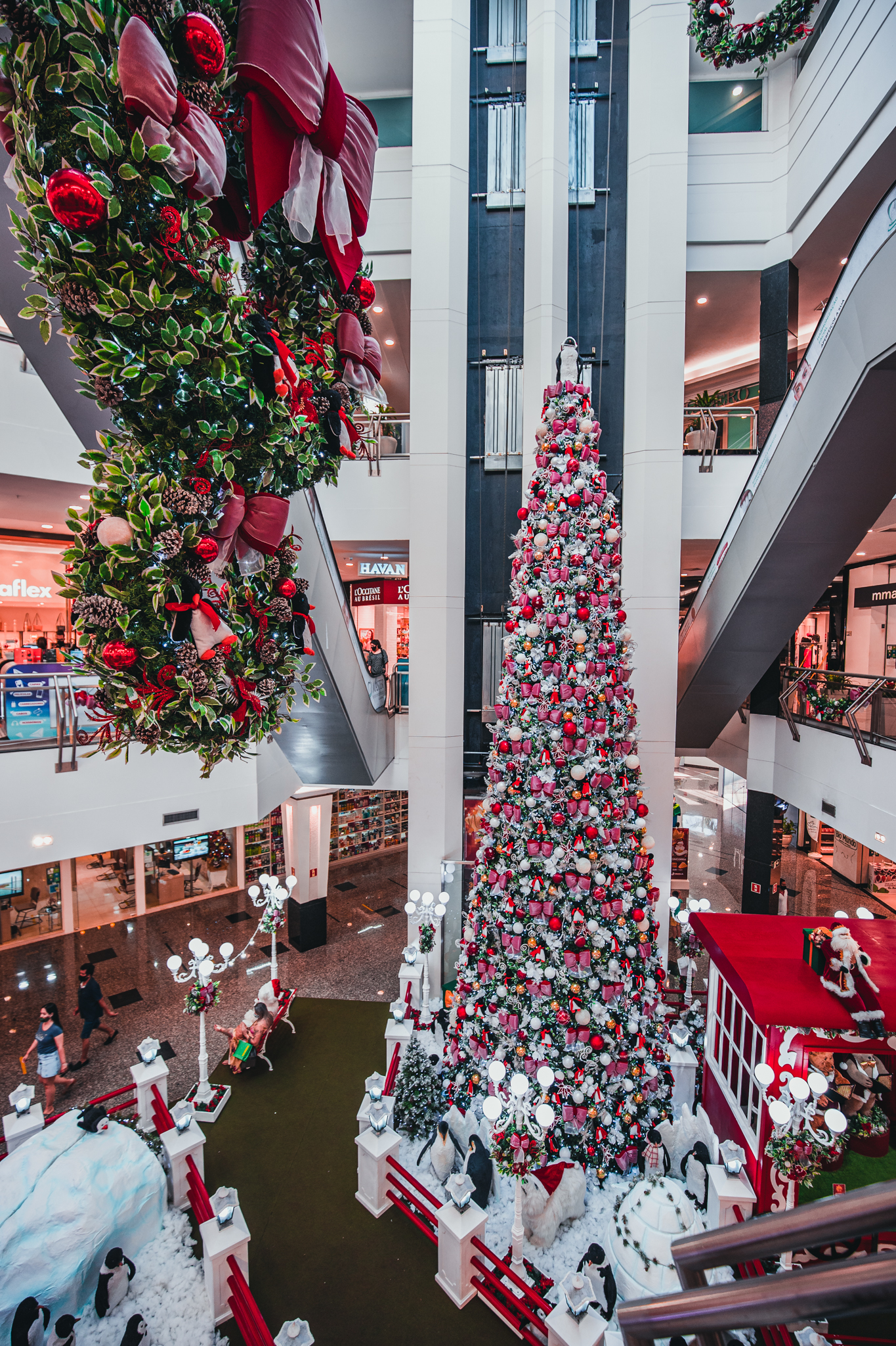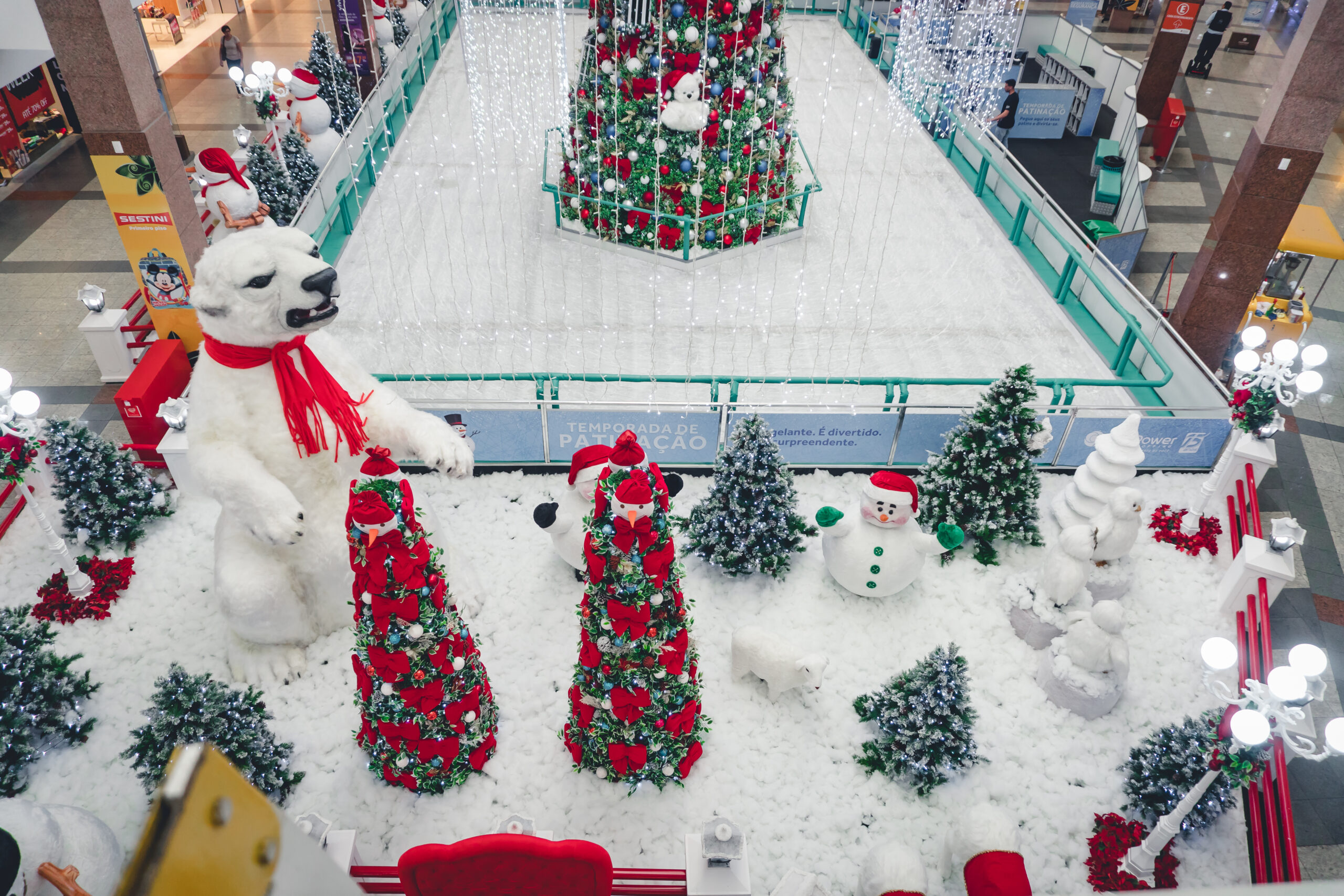 Natal na Neve transforma o cenário natalino em um verdadeiro conto do Polo Norte! Com um manto de neve artificial que cobre toda a ambientação, a decoração traz ursos polares em pirâmides acrobáticas, pinguins simpáticos em trajes natalinos e renas encantadas espalhadas entre pinheiros cobertos de branco.