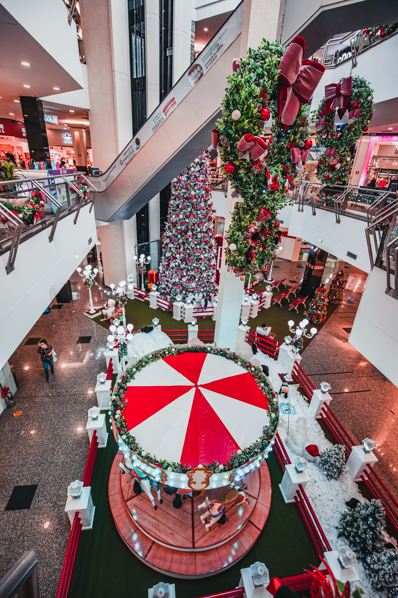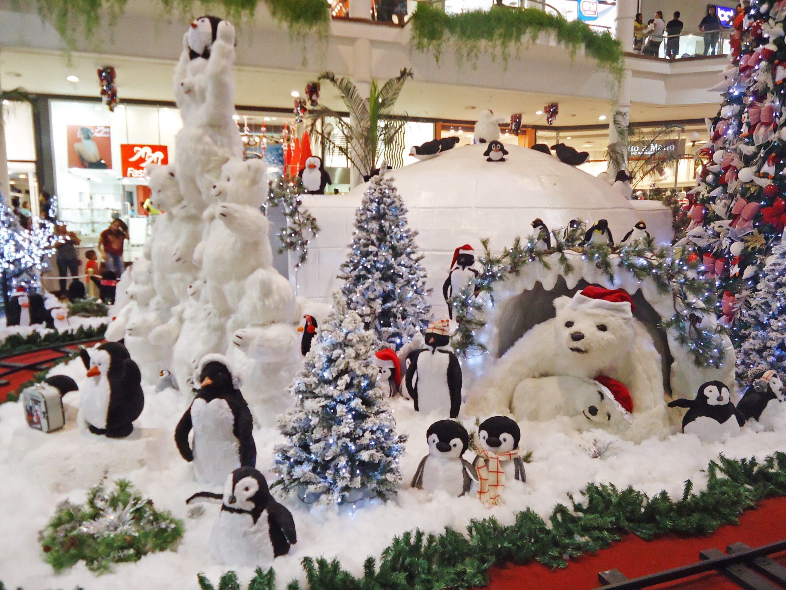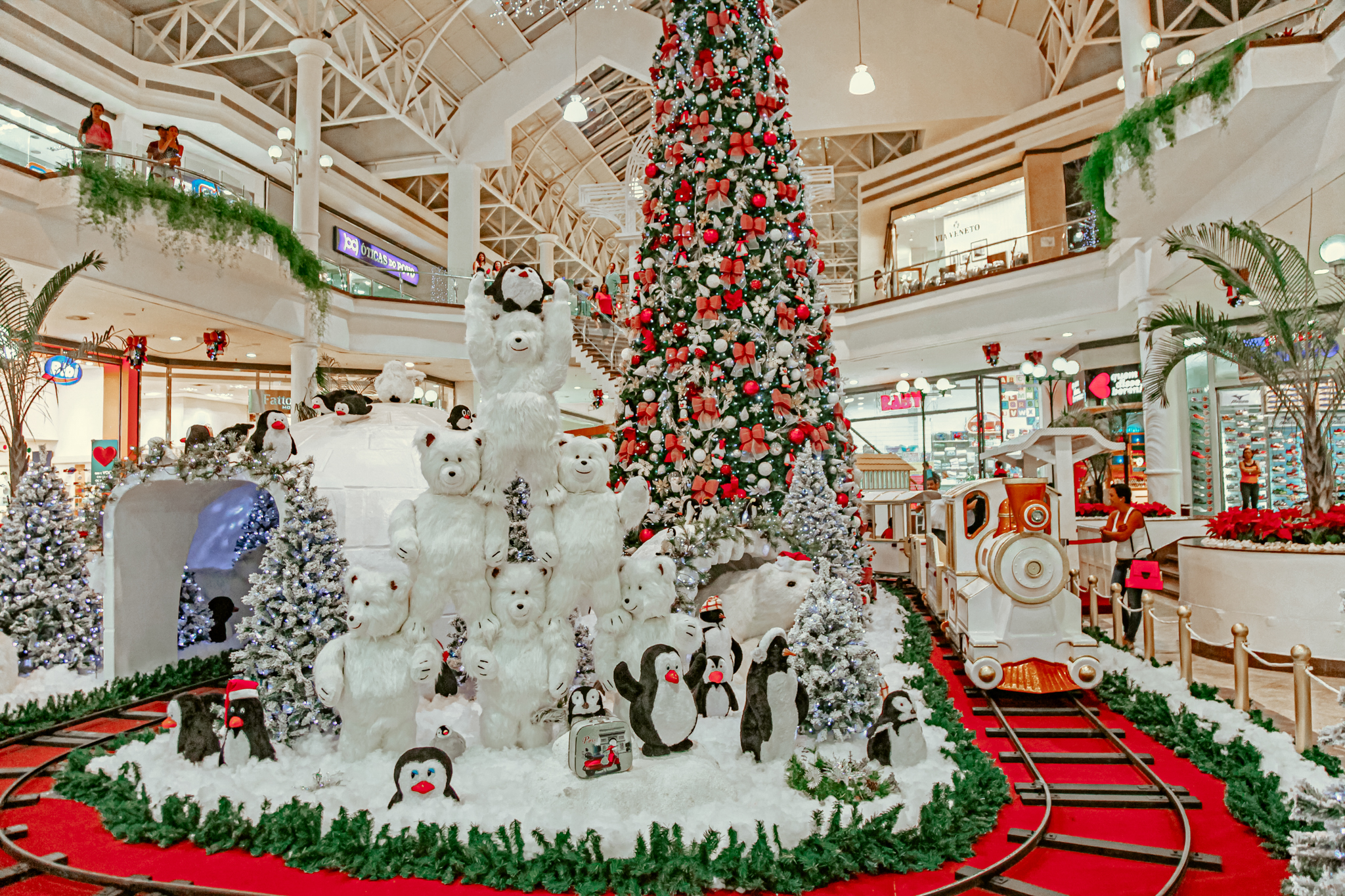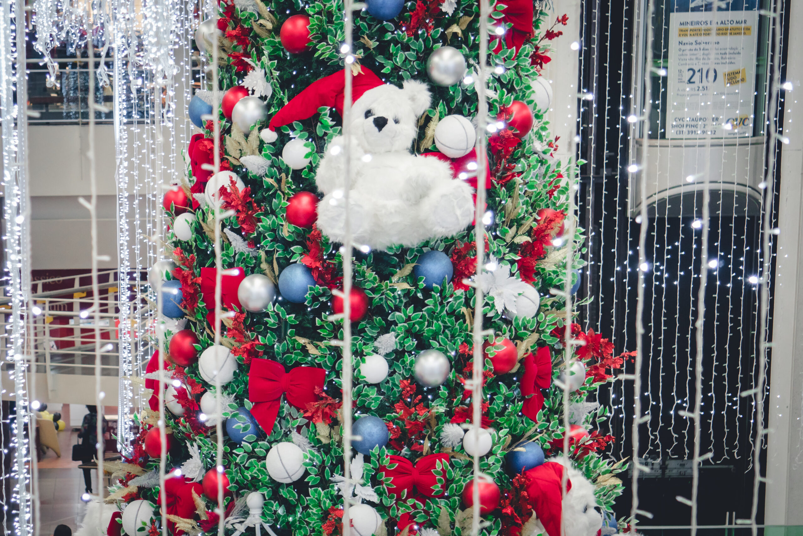 Natal na Neve transforma o cenário natalino em um verdadeiro conto do Polo Norte! Com um manto de neve artificial que cobre toda a ambientação, a decoração traz ursos polares em pirâmides acrobáticas, pinguins simpáticos em trajes natalinos e renas encantadas espalhadas entre pinheiros cobertos de branco.