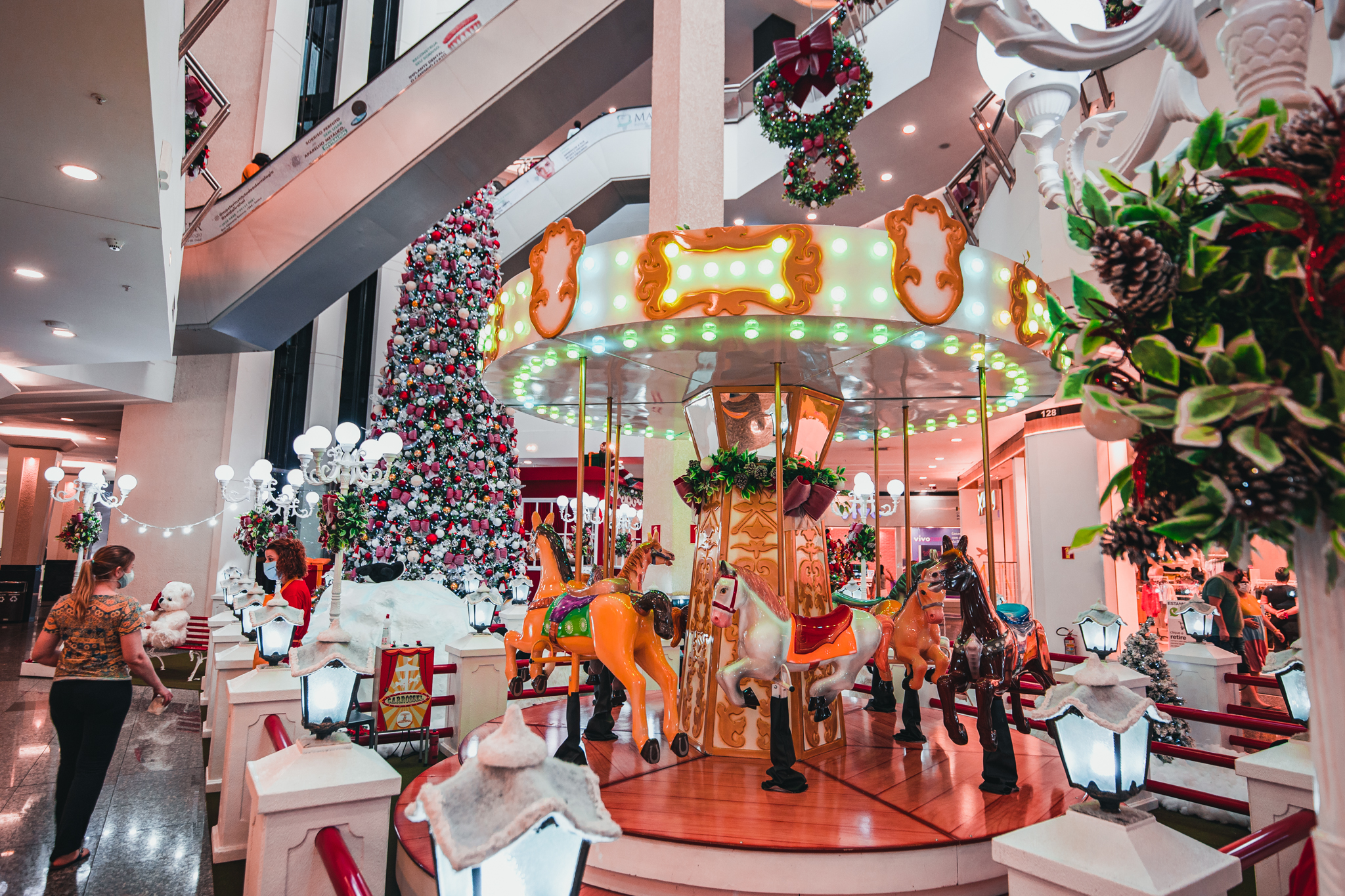 Em um mundo gelado e mágico, o Natal na Neve encanta com personagens como ursos acrobatas, pinguins e renas entre pinheiros nevados. A decoração é um verdadeiro espetáculo de luzes, cores e fantasia, com cenários interativos e cheios de encanto natalino.